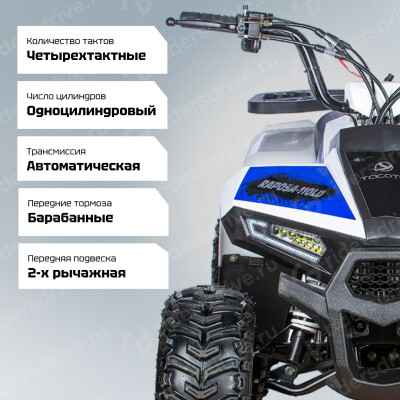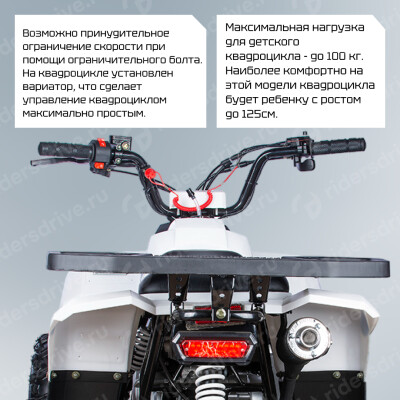 Мне понравилось что собран довольно крепко. Рама сварена аккуратно, сварочные швы ровные, не страшно отпускать ребенка. Мотор не прожорливый, бензина ест немного. По лесной тропе едет уверенно, грязи тоже не боится, колеса широкие цепляются хорошо. Я немного разбираюсь в технике и скажу что для подростка это оптимальный вариант учиться управлять. Да и сам пару раз садился, катается без напряга. Рекомендую, если нужен недорогой но надежный вариант.