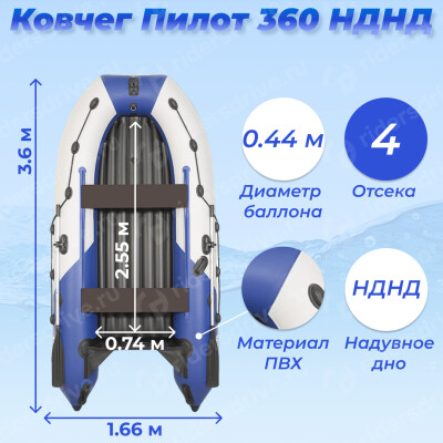 Лодка моторная Ковчег Пилот 360 НДНД (бело-синий)