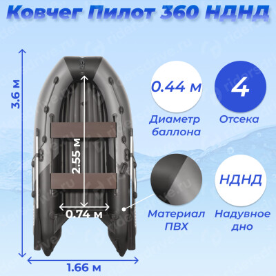 Лодка моторная Ковчег Пилот 360 НДНД (черно-серый)